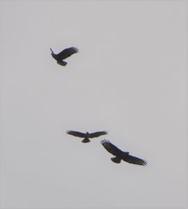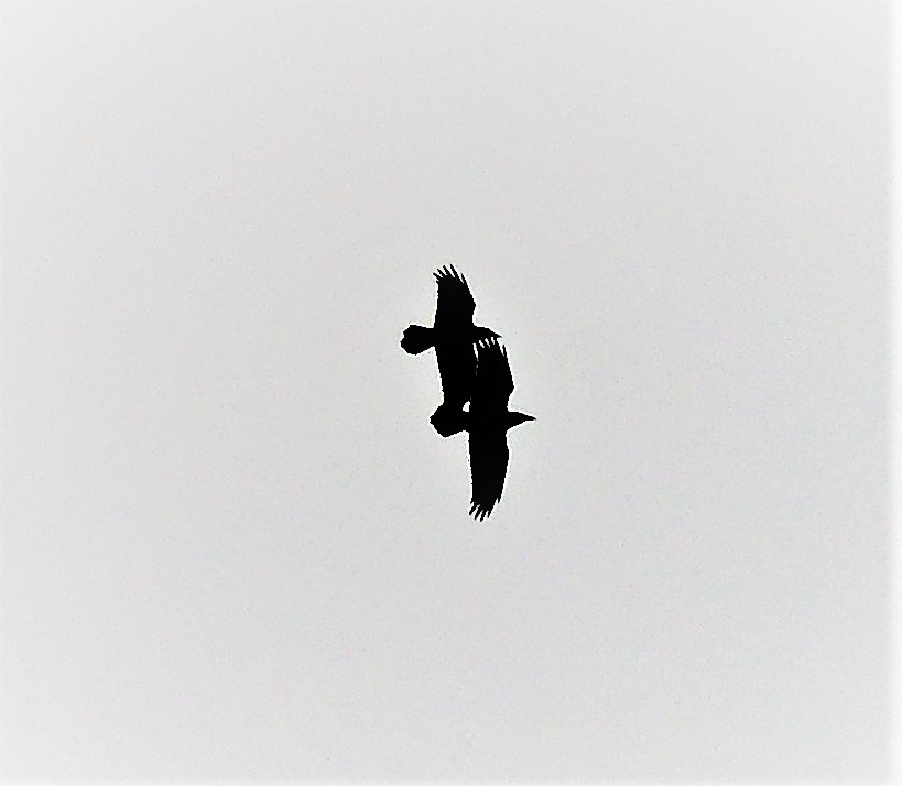 Lots to see from Warren Wood. Not just Red Kites overhead. Below are buzzards (rounded tails) and ravens (wedge tails) performing aerobatics. Kites with forked tails.